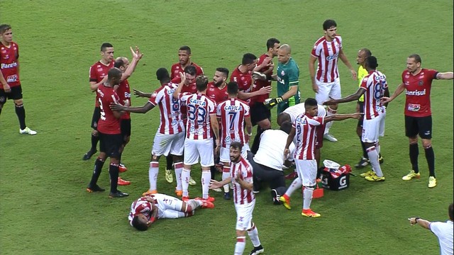 Aos 41 minutos, Washington acertou o Marco Antônio, quando o meia do Náutico estava deitado no gramado. Por conta da batida, o atleta do Timbu colocou uma proteção na cabeça e o jogador xavante foi expulso. - DESTAQUESEGUNDO TEMPO