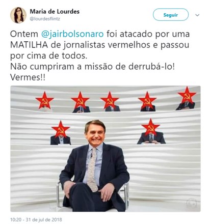 A entrevista de Bolsonaro no Roda Viva da última segunda (30) dividiu muito o público que a assistiu. Assim também aconteceu com os memes do programa. Neste, a critica vai aos jornalistas e suas perguntas.